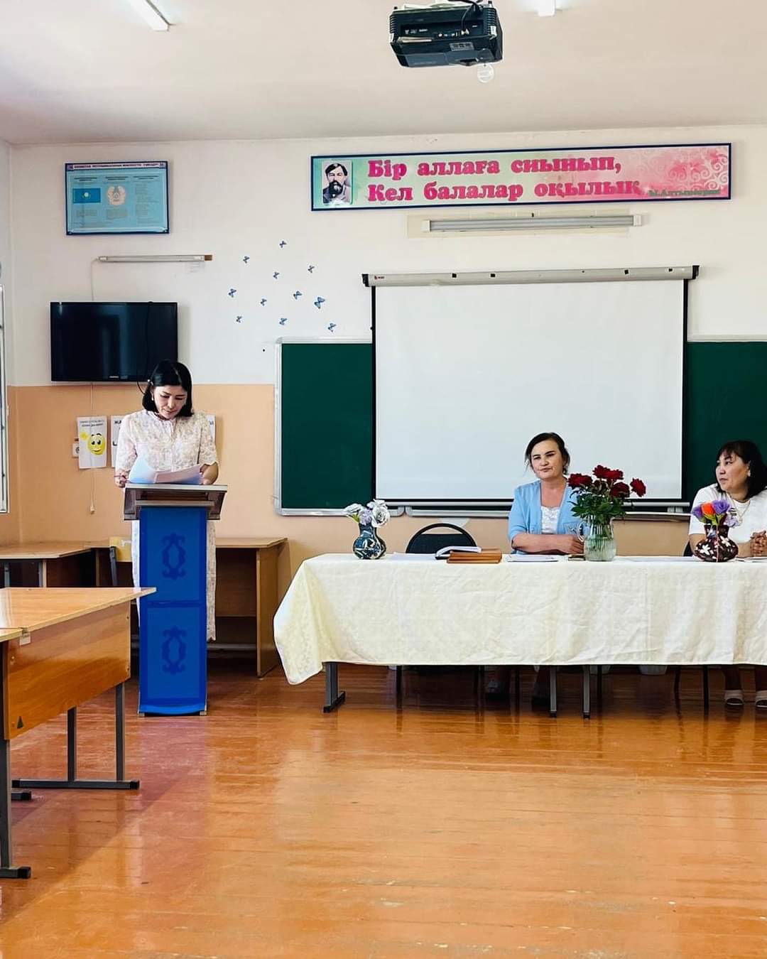 Педкеңес соңында 2023-2024 оқу жылының қорытындысы бойынша қызметтік міндеттерін абройлы атқарып, жас ұрпаққа саналы тәрбие, сапалы білім беру саласына қосқан орасан үлестері үшін мектебіміздің үш педагогіне директорымыз Ибраева Райхан Дәрменқызы “Үздік педагог” мәртебесін табыстады.