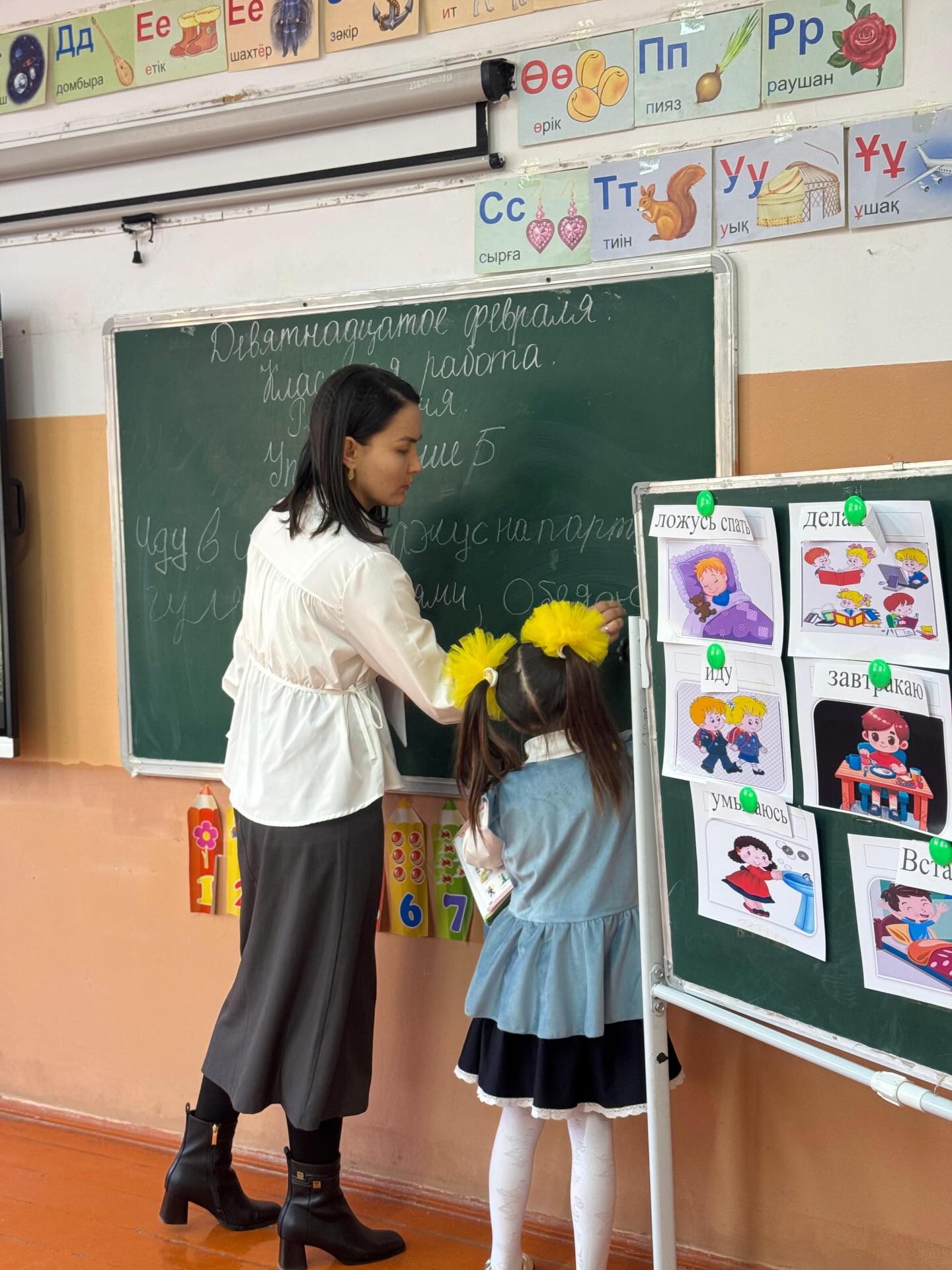 Мектебімізде орыс тілі мен әдебиеті пәні мұғалімі Калауова Акмарал Әлішерқызының 2-сынып оқушыларымен «Режим дня» тақырыбында ашық сабағы жоғары деңгейде өтті.